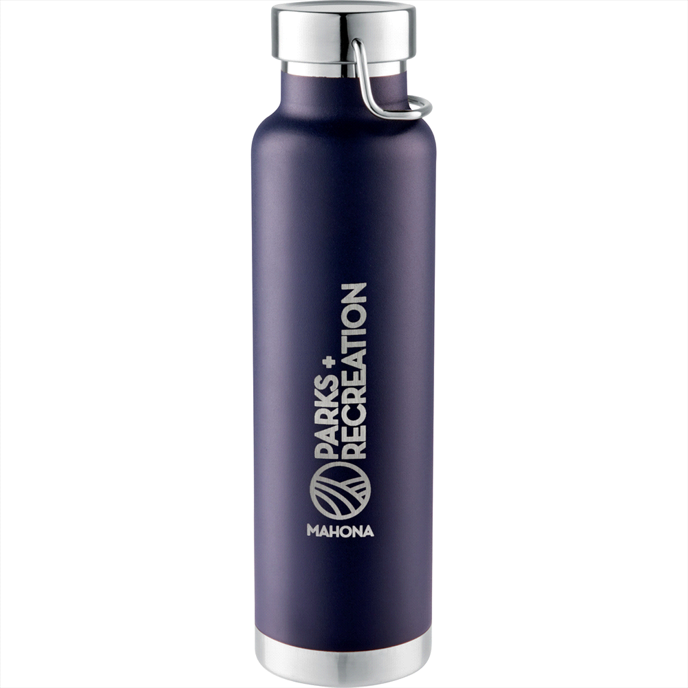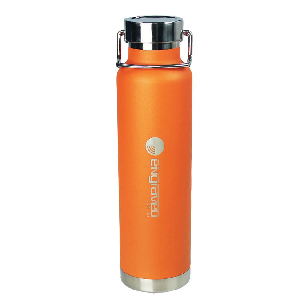 Durable, double-wall stainless steel vacuum construction with copper insulation, which allows your beverage to stay cold for 48 hours and hot for at least 12 hours. The construction also prevents condensation on the outside of the bottle. On-trend, durable powder coating. Stainless steel screw-on, spill resistant lid with durable stainless steel hand loop. Wide opening for comfortable filling and pouring. Perfect for ice cubes. Fits most standard car cup holders. Capacity 650ml.