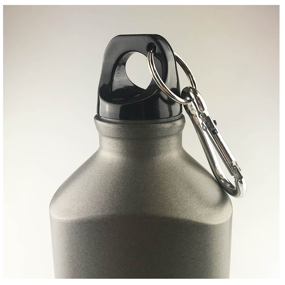 Capacity: 600ml. Aluminium single walled. Triangle shape with matt finishing. With carabin screwe-on lid