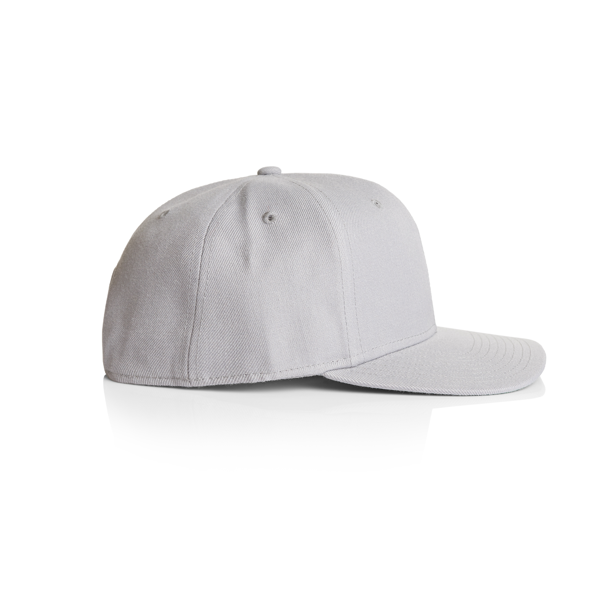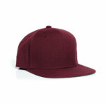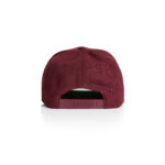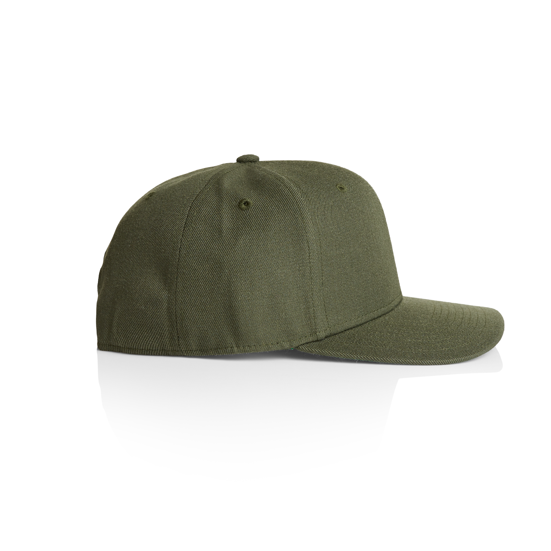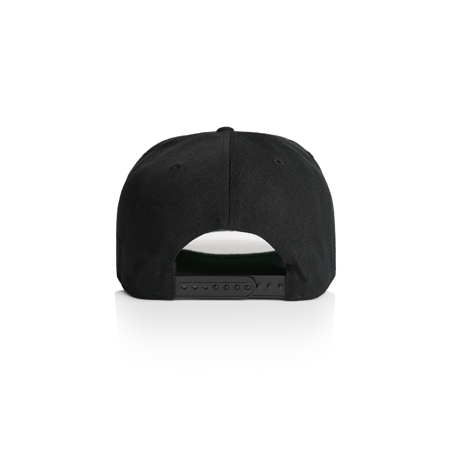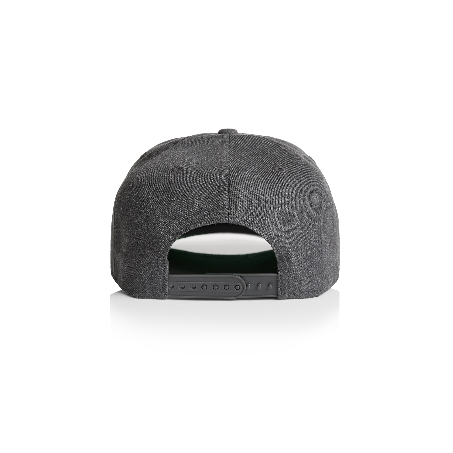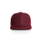 High profile snapback cap, adjustable plastic fastener, eyelets, green under-peak lining, mid weight, 80% acrylic 20% wool