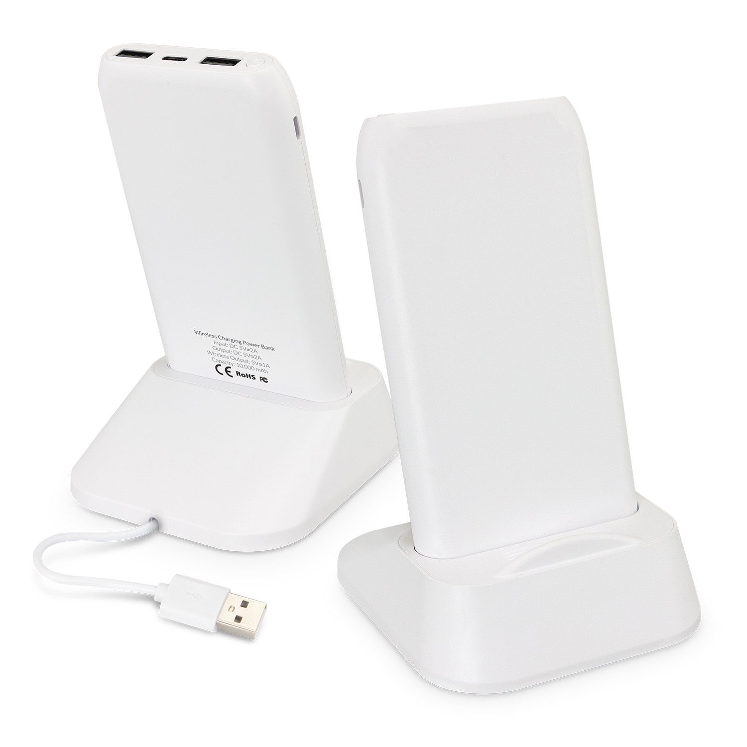 Luxury phone charging station with a detachable 10,000mAh wireless power bank. It can be used as a stand for devices that are enabled for wireless charging or the power bank can be removed and used independently for portable wireless charging. The power bank can also be used as a conventional charger with a cable and it can charge two devices at once. It can be recharged simply by placing it back on the stand or by using a USB port or a mains adapter. Triode has an input power of 5V/2A, a wireless output of 5V/2.4A and a USB output of 5V/1A. It is presented in a white box with an 80cm Micro-B USB cable and an instruction leaflet.