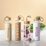 500ml capacity nature line glass bottle. Features a bamboo screw cap, with natural colour, braided carry handle. Includes natural cork cover and comes in an individual box with an attractive eco design. FEATURES 500ml capacity Glass body Bamboo screw cap, with practical, braided carry handle Natural cork pouch included Packed in an individual box with an attractive eco design