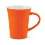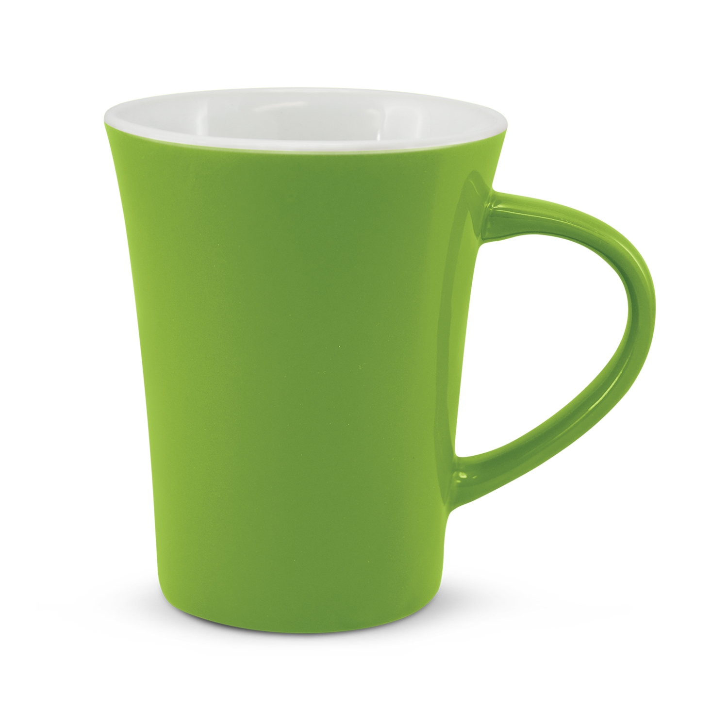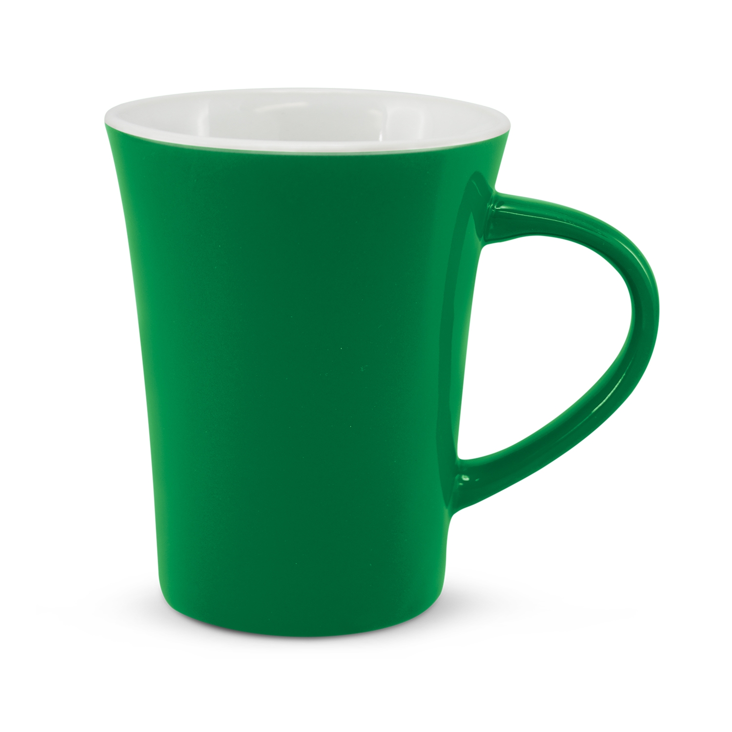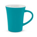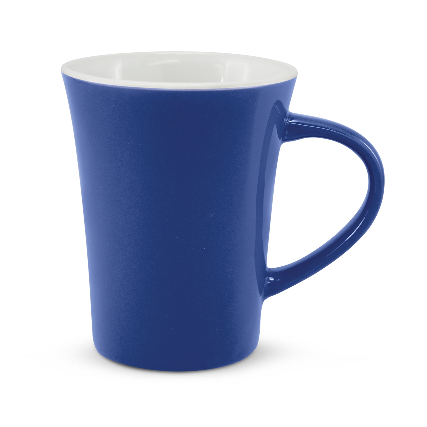 Contoured, 300ml round stoneware coffee mug presented in a black gift box. The inside of the mug is white with a stunning range of bright outer colours and the branding options available are dishwasher safe. Decoration options: Pad Print