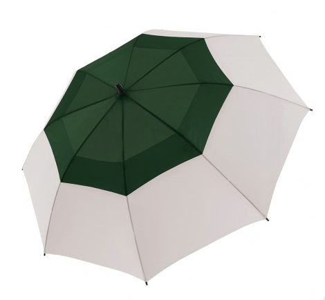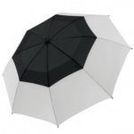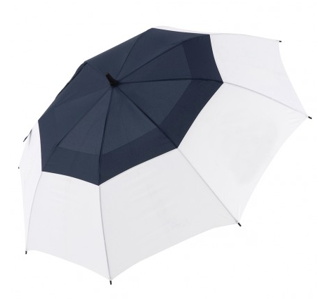 A premier umbrella with quality, innovation and styling, the Sovereign has high quality pongee fabric and a strong auto-opening, wind-resistant frame and vented canopy. 190T high quality pongee fabric. Full fibreglass shaft with wind-resistant frame. Superior wind vent system. Auto open. Quality rubberized handle. SPF rating 30+ “Very Good Protection”