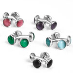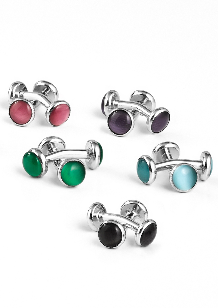 Plated copper and gem stone. A distinctive addition with stones to match all the shades and cleverly crafted to suit both Mens & Ladies shirts.