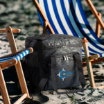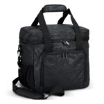 Practical 17L cooler bag manufactured from 300D polyester with a stylised camouflage pattern. The bag has thick PE foam insulation encased in a water-resistant PEVA inner liner. It features an adjustable shoulder strap, a zippered front pocket, two mesh side pockets, and carry handles with a velcro cuff.