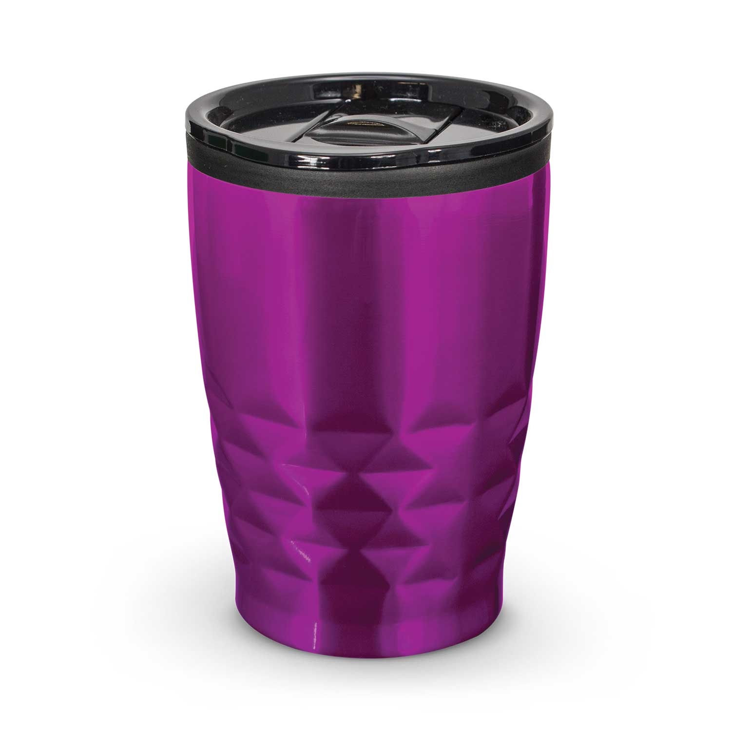 Trendy 400ml cup with double wall construction which will keep coffee hot for longer. It features a smart diamond patterned stainless steel outer wall and a plastic inner wall. Urban has a secure plastic push on lid with a splash proof sliding cover and a soft EVA non-marking base. It laser engraves to a stainless steel finish and handwashing is recommended.