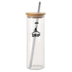 480ml Vanisa Glass Drink Bottle made of single-walled borosilicate glass which is suitable for both cold and hot. Transparent and pure, with comfortable touch. Free of plumbum and BPA, which is ecofriendly and a healthy drinking liquid style. Split proof tight sealed bamboo lid to ensure no spillage, and a metal straw held tight by a transparent rubber eyelet on the lid.