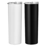450ml skinny straight matt finishing coffee mug is made of 304 stainless steel, double walled and vacuum insulated. Keeps hot up to 8 hours and cold for up to 12 hours. Has a secure push on clear plastic leakproof lid with a splashproof sliding closure. BPA free and handwash recommended, not microwave safe.