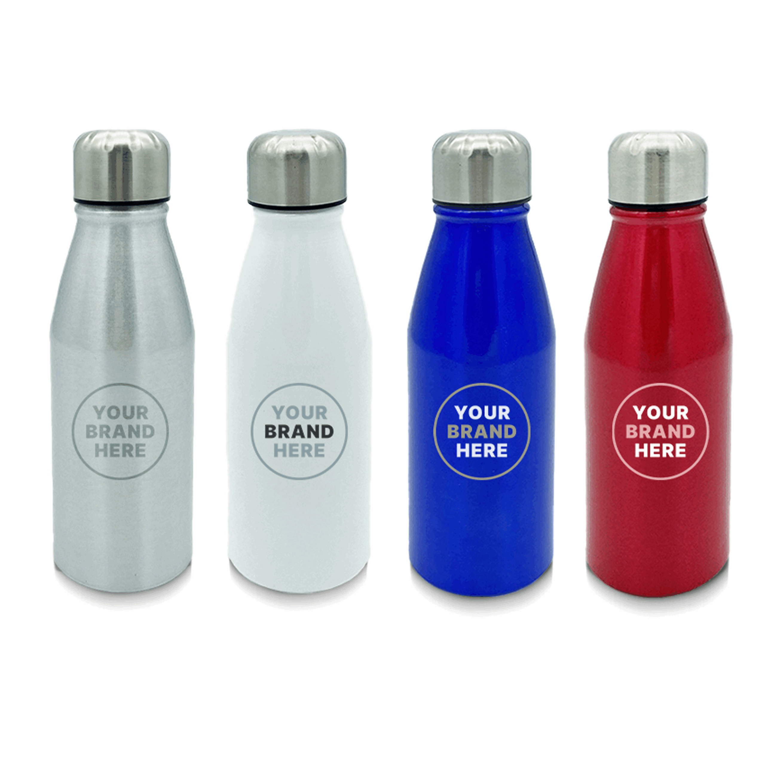 Our Vita Water 450ml Bottle is a fantastic giveaway item, this bottle is made from a high quality single wall aluminium with a stainless steel lid. Make sure you stay hydrated on the go with our lightweight & durable drinking bottle, with a strong branding area for you to promote your business today!. Features. Fantastic branding area with your logo, slogan or more. Secure twist no-spill lid. Lightweight & durable. Vibrant Colours. Reusable and environmentally friendly. Extremely popular at events and conferences, or corporate gift. Material. Bottle: Single wall aluminium. Lid: Stainless Steel outer with PP inner