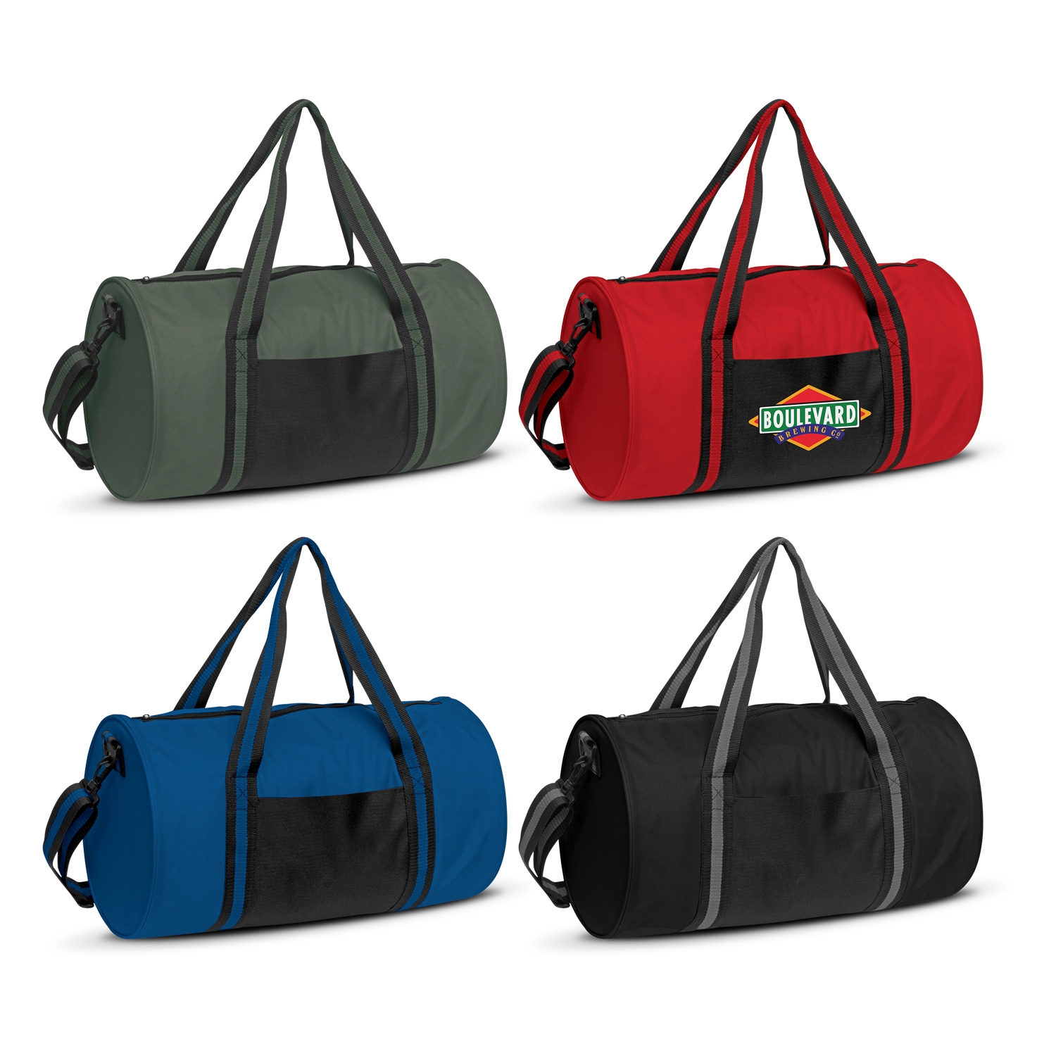 Roll duffle bag manufactured from strong 600D polyester with two external pockets. Has both carry handles and a removable padded shoulder strap. . Decoration options: Screen Print | Digital Transfer