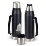Practical 1L stainless steel, double-wall vacuum flask with a stunning powder-coated finish that will keep drinks hot for hours. Wayfarer is fitted with a screw-on cup for ease of use and a black carry handle for easy transportation. The flask engraves to a shiny steel finish and is BPA-free. Wayfarer is presented in a black gift box. This product is not dishwasher safe, and handwashing is recommended.