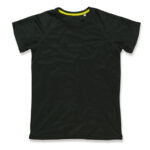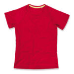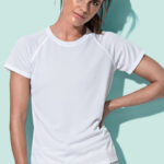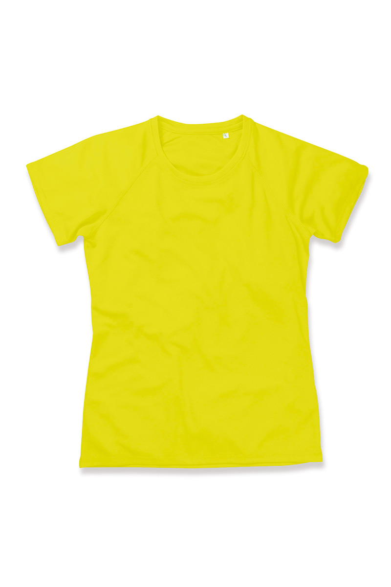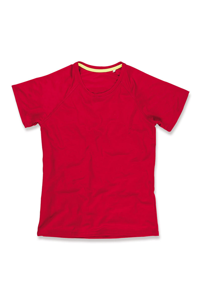 This modern and sporty ladies top is activewear t-shirt made especially for women, with raglan sleeves made of quick-drying, breathable mesh-material: ACTIVE-DRY°. This fabric technology wicks away sweat and moisture-keeping you comfortable & dry, fit for another run.. Contrast neck tape and decorative flatlock seams are great for excellent freedom of movement.