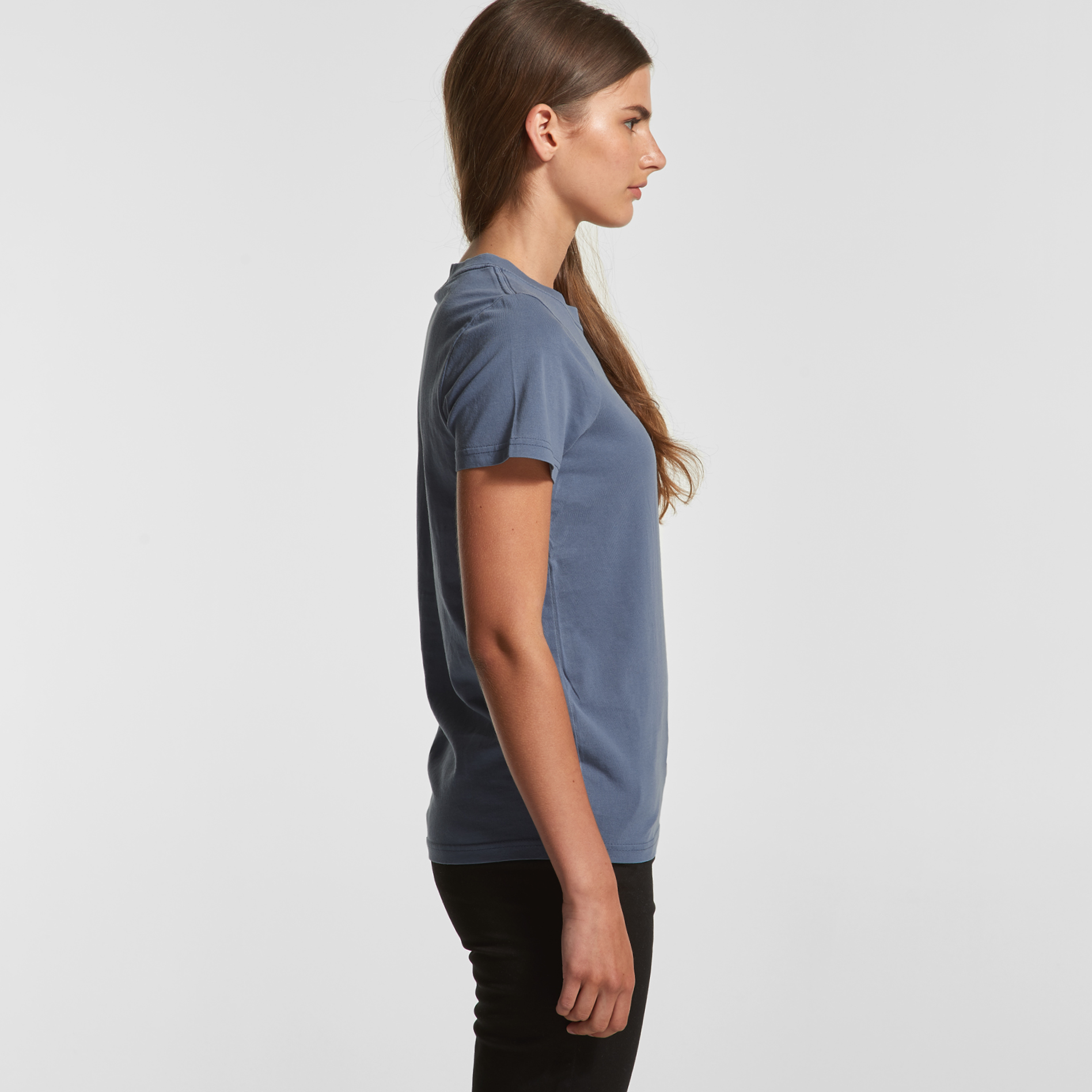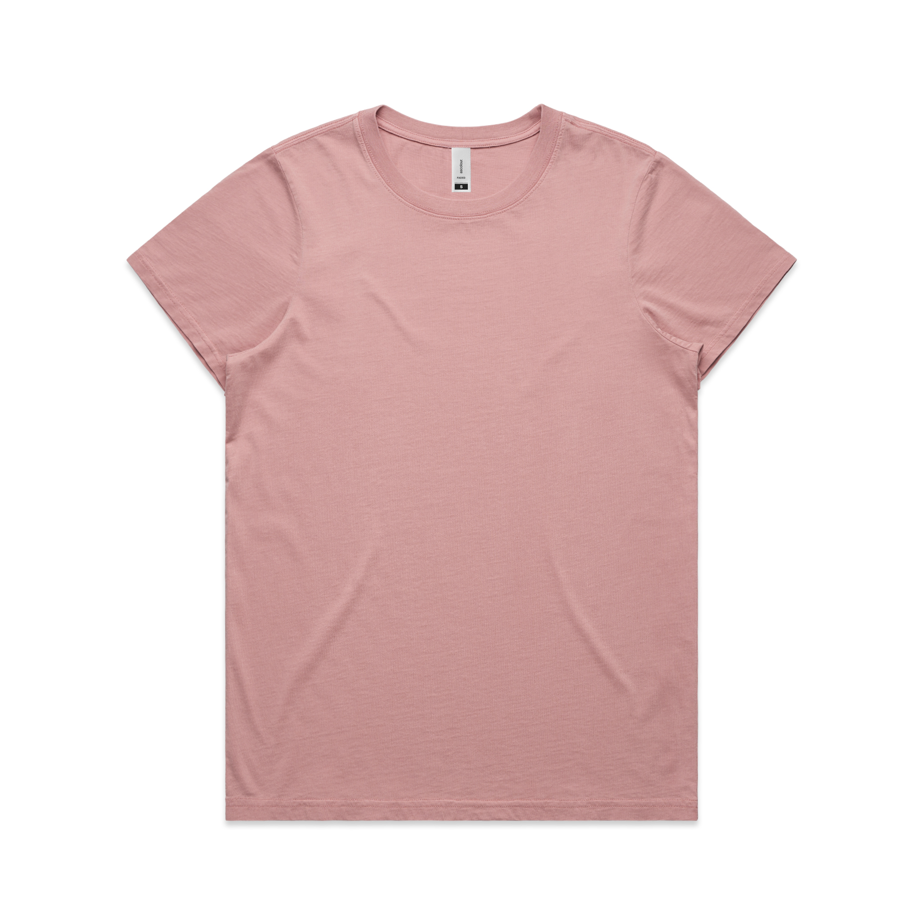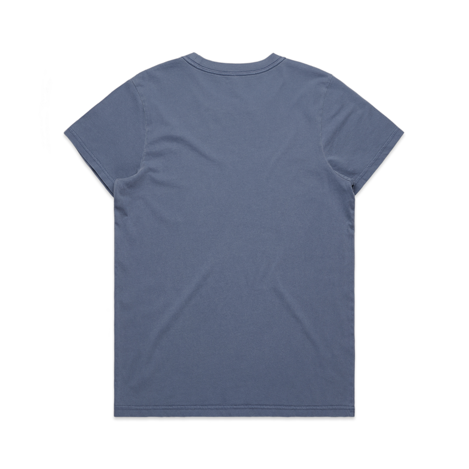 Women’s relaxed fit crew neck faded tee. Mid weight, 180 GSM, 26-singles. 100% combed cotton Neck ribbing, side seamed, neck seam twin needle stitch, shoulder to shoulder tape, double needle hems, preshrunk to minimise shrinkage