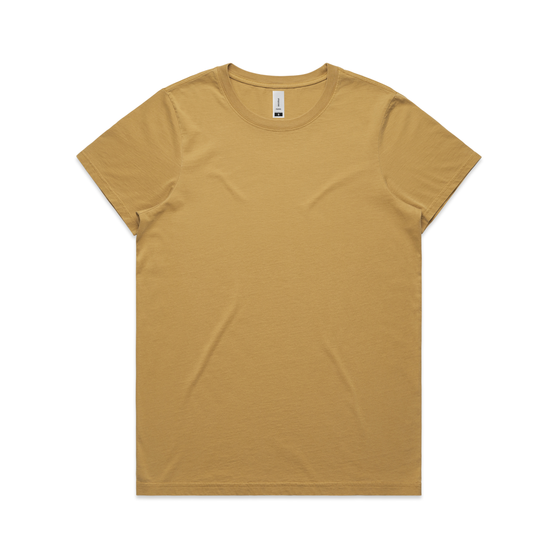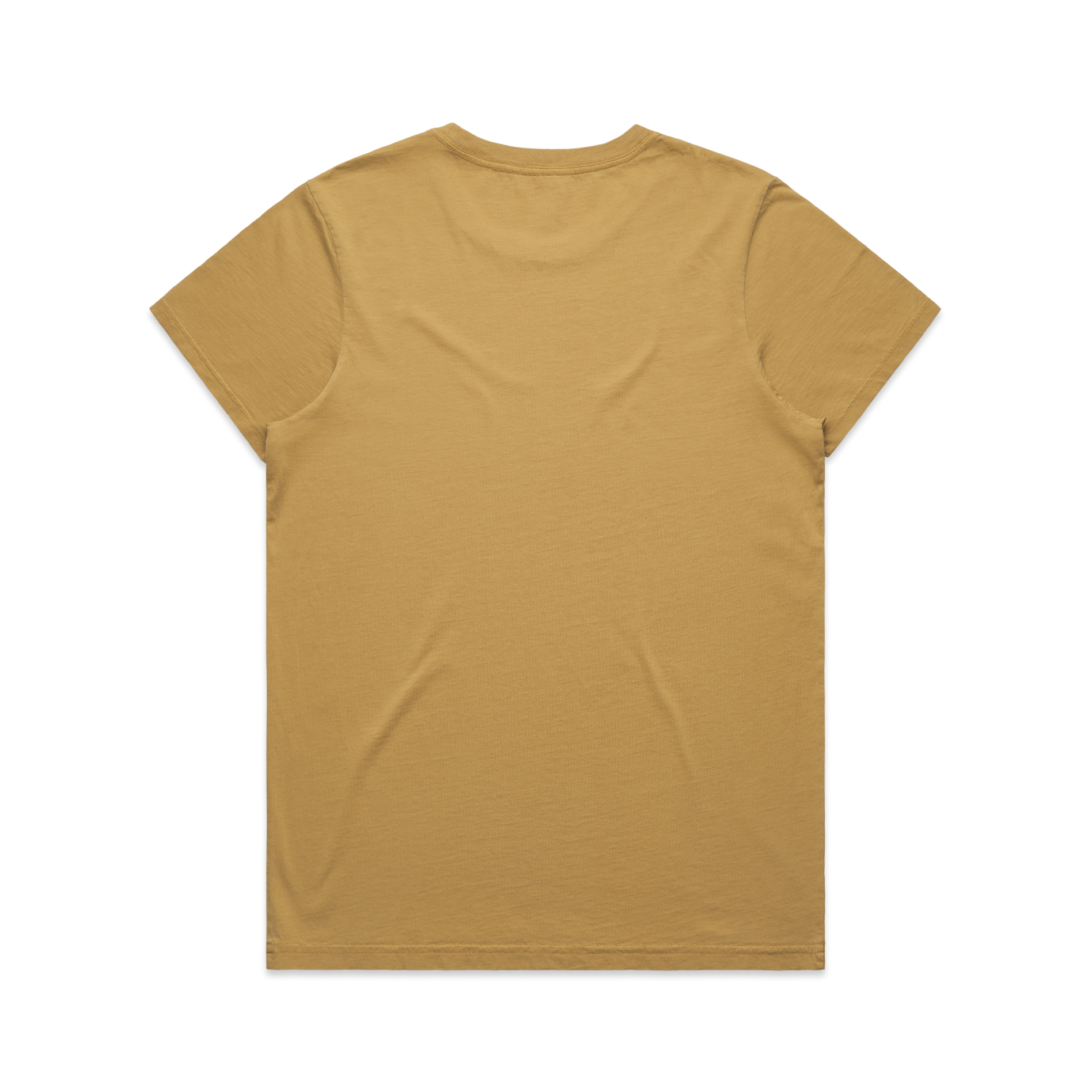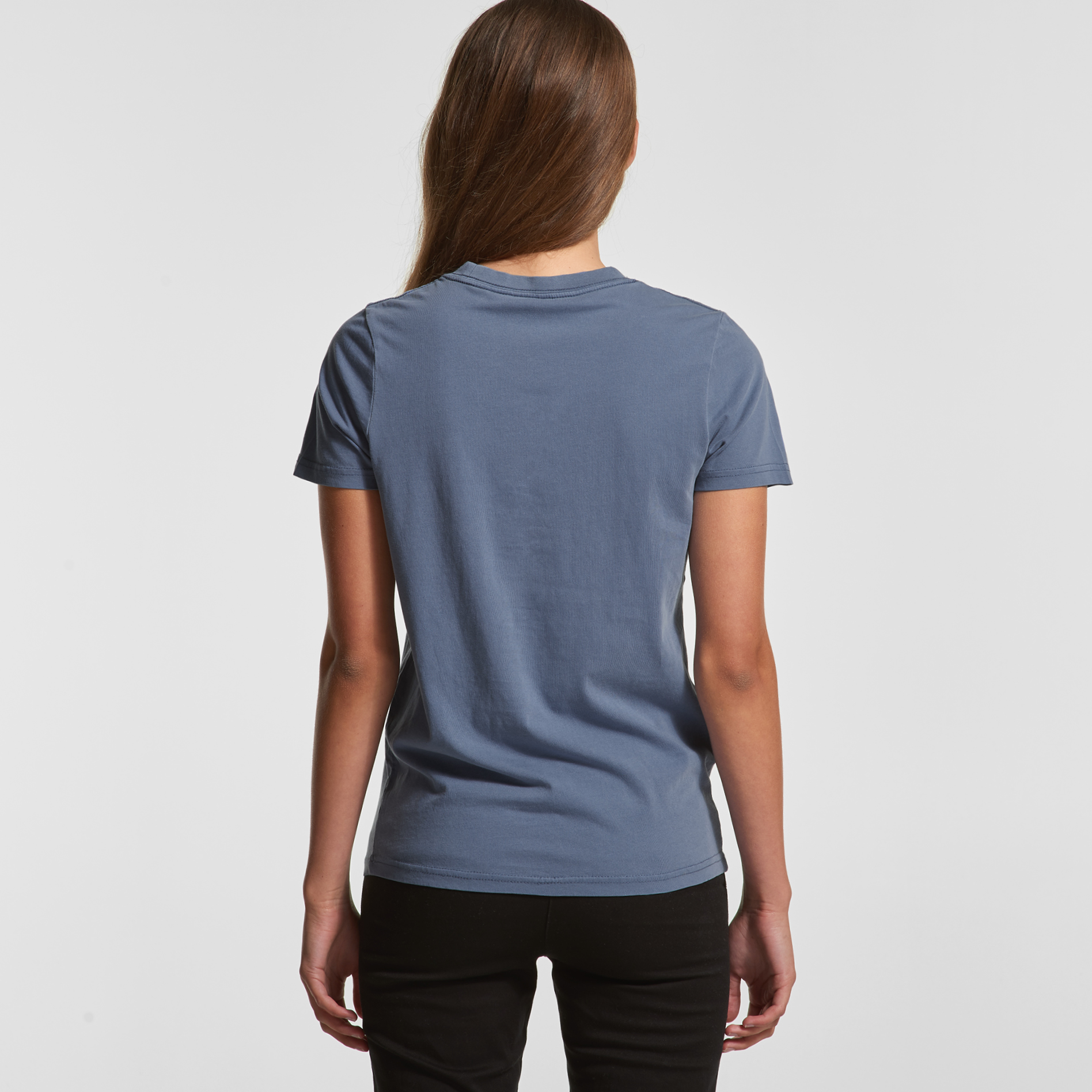 Women’s relaxed fit crew neck faded tee. Mid weight, 180 GSM, 26-singles. 100% combed cotton Neck ribbing, side seamed, neck seam twin needle stitch, shoulder to shoulder tape, double needle hems, preshrunk to minimise shrinkage