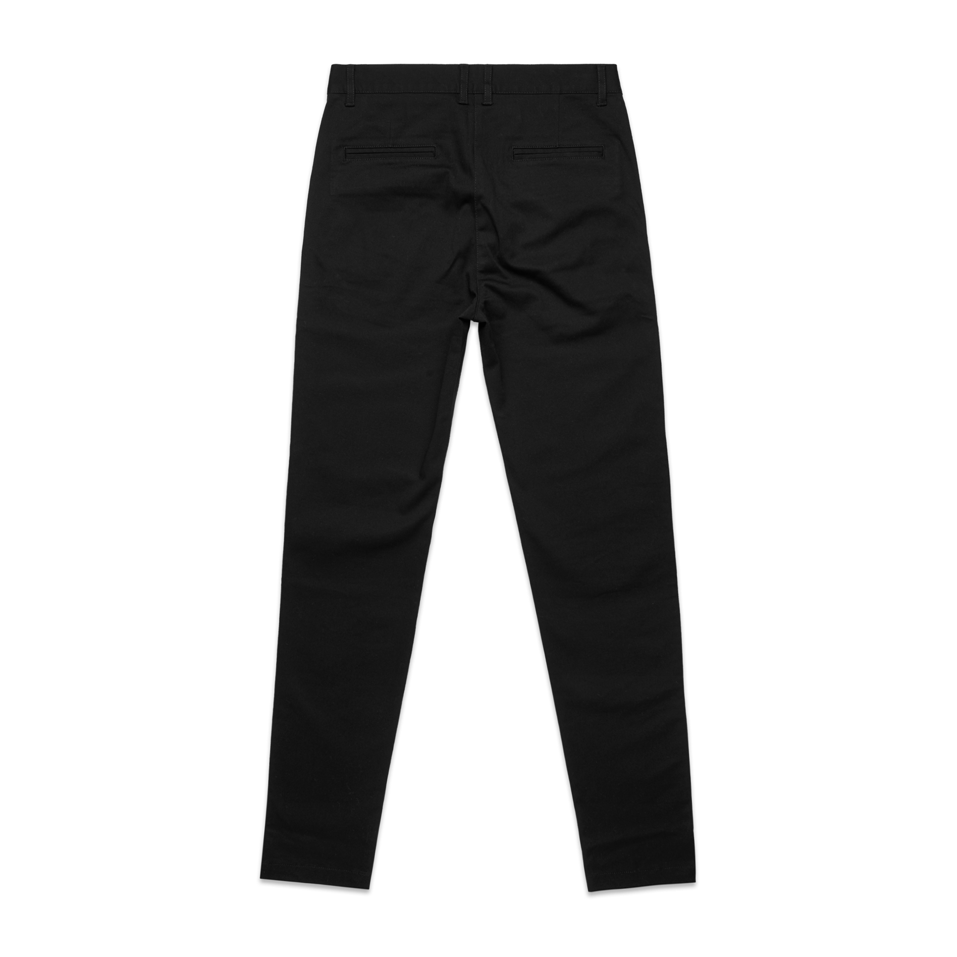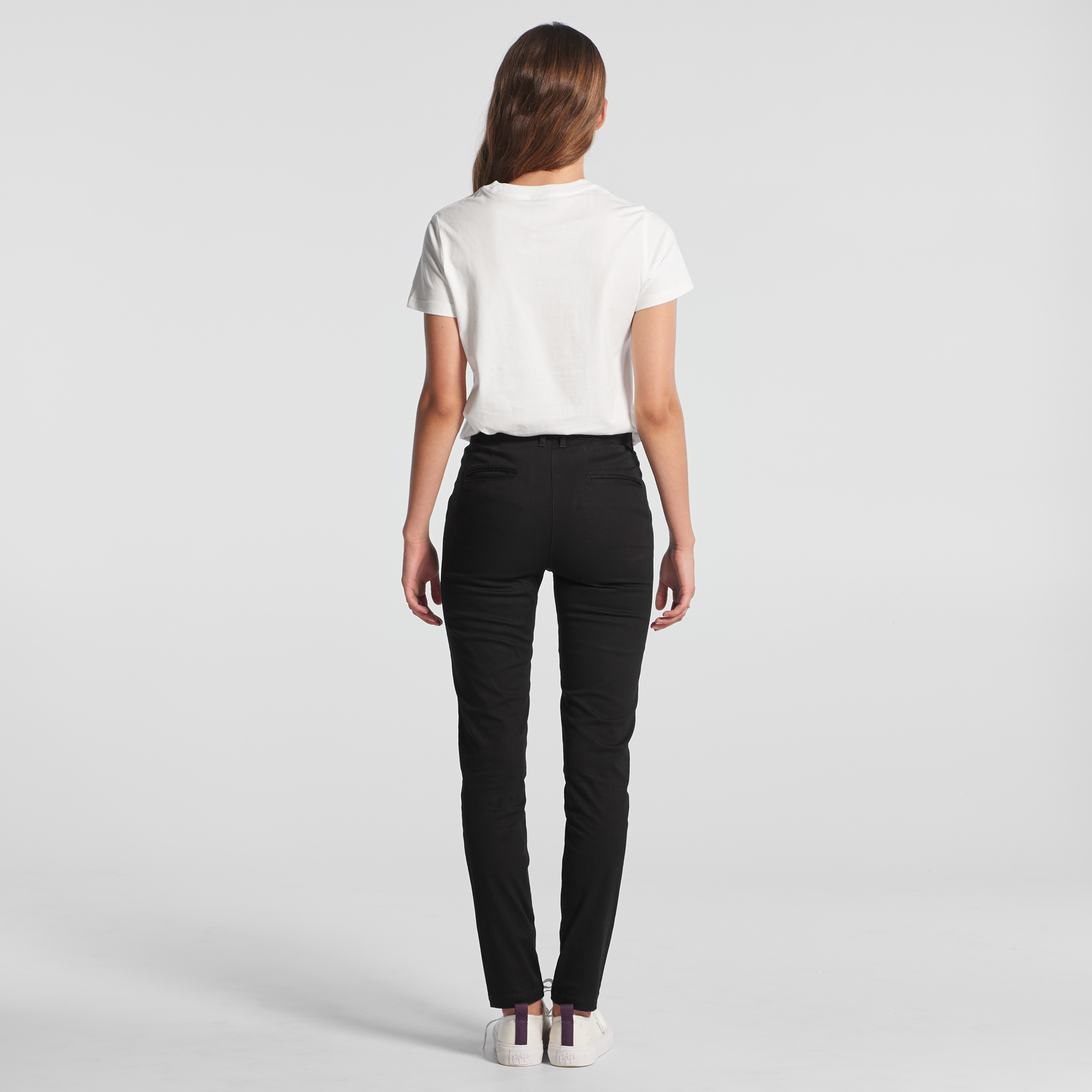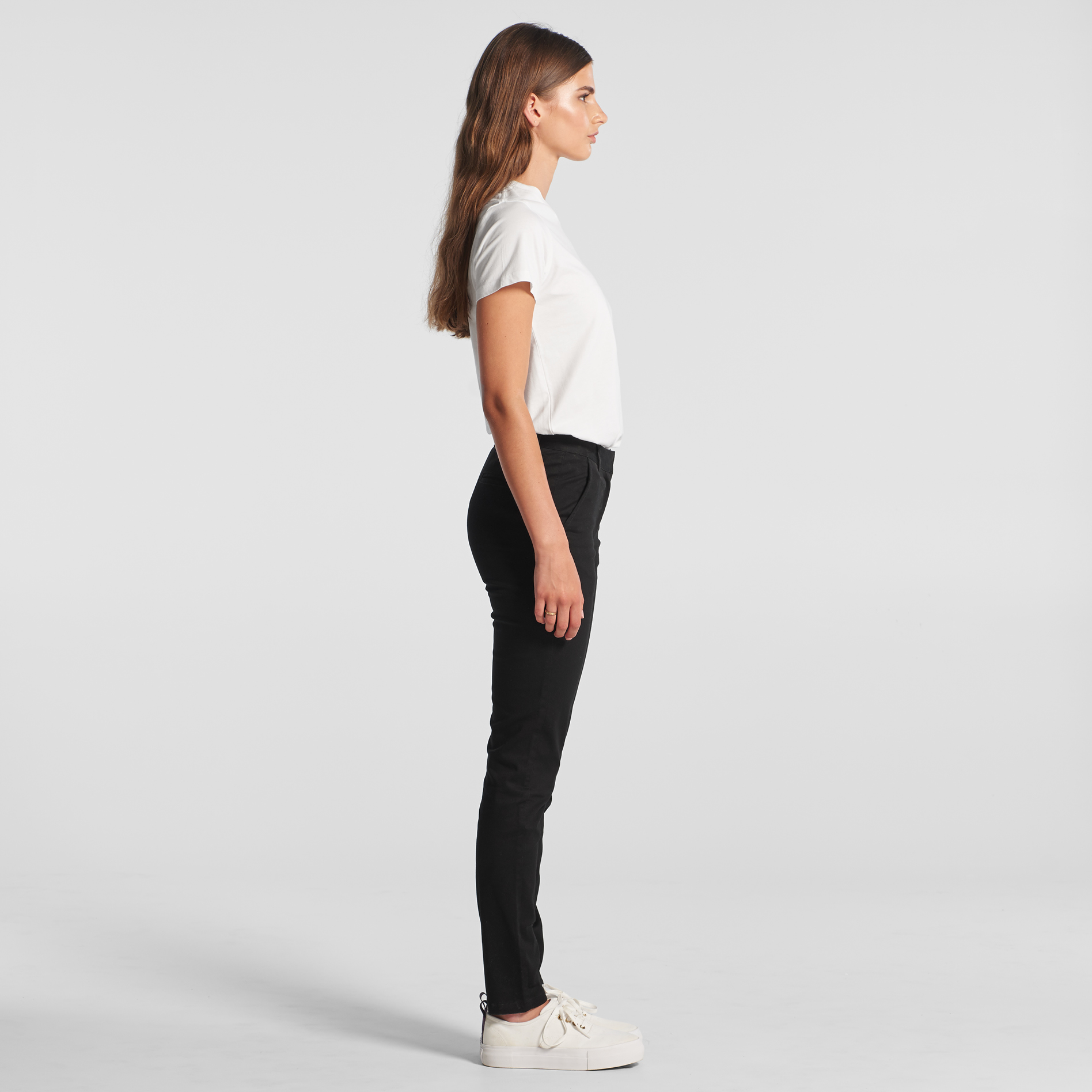 Women’s slim-regular fit pant. Mid weight, 250 GSM 98% cotton 2% elastane. Belt loops on waistband, 2 side pockets, 2 jet pockets at back, Button and hook & eye closure, anti-brass metal YKK zip fly, preshrunk to minimise shrinkage