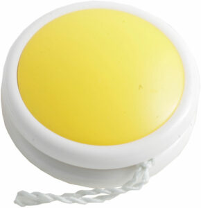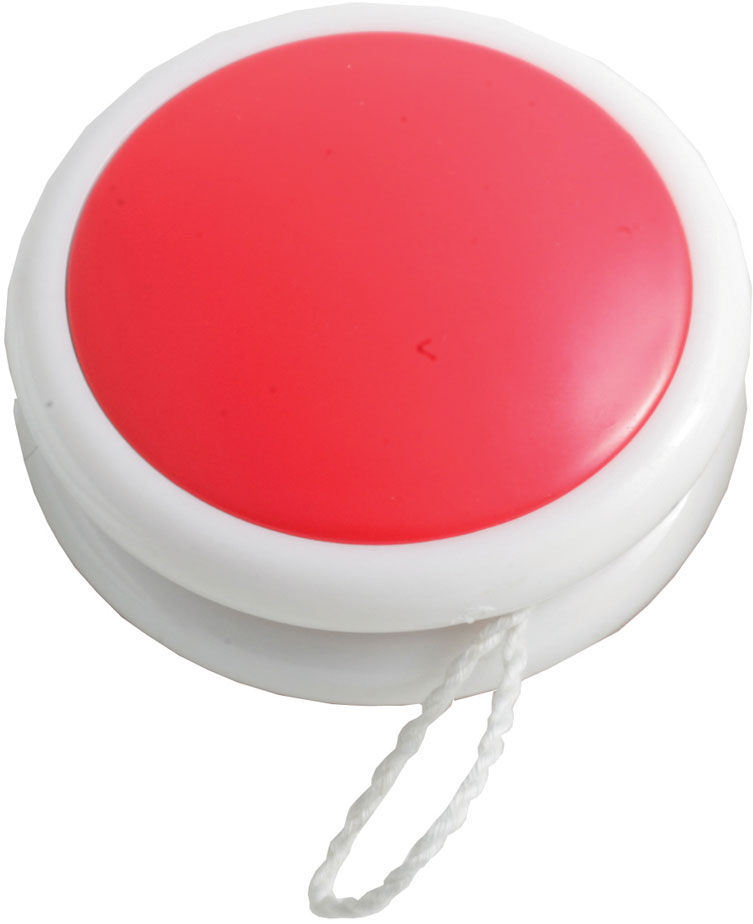 Colourful promo yo yo with contrasting white edges and large branding area.