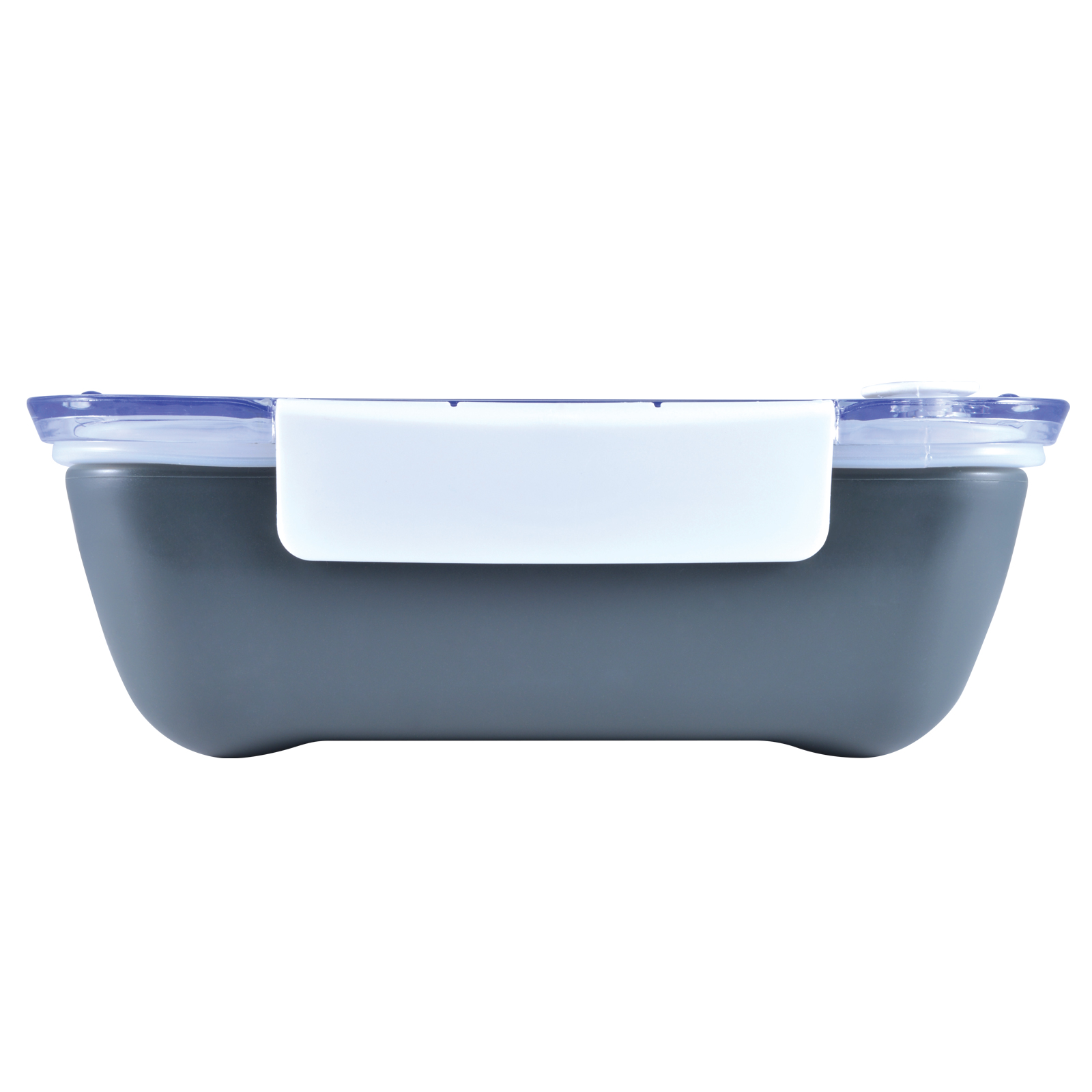 Food / storage container with locking lid. Steam release lid vent. Separate internal tray and eating utensil (spoon, fork and knife in 1). Suitable for reheating food in microwave, not cooking. Eco Credentials: Eco friendly alternative as zero waste and great alternative to plastic wear.