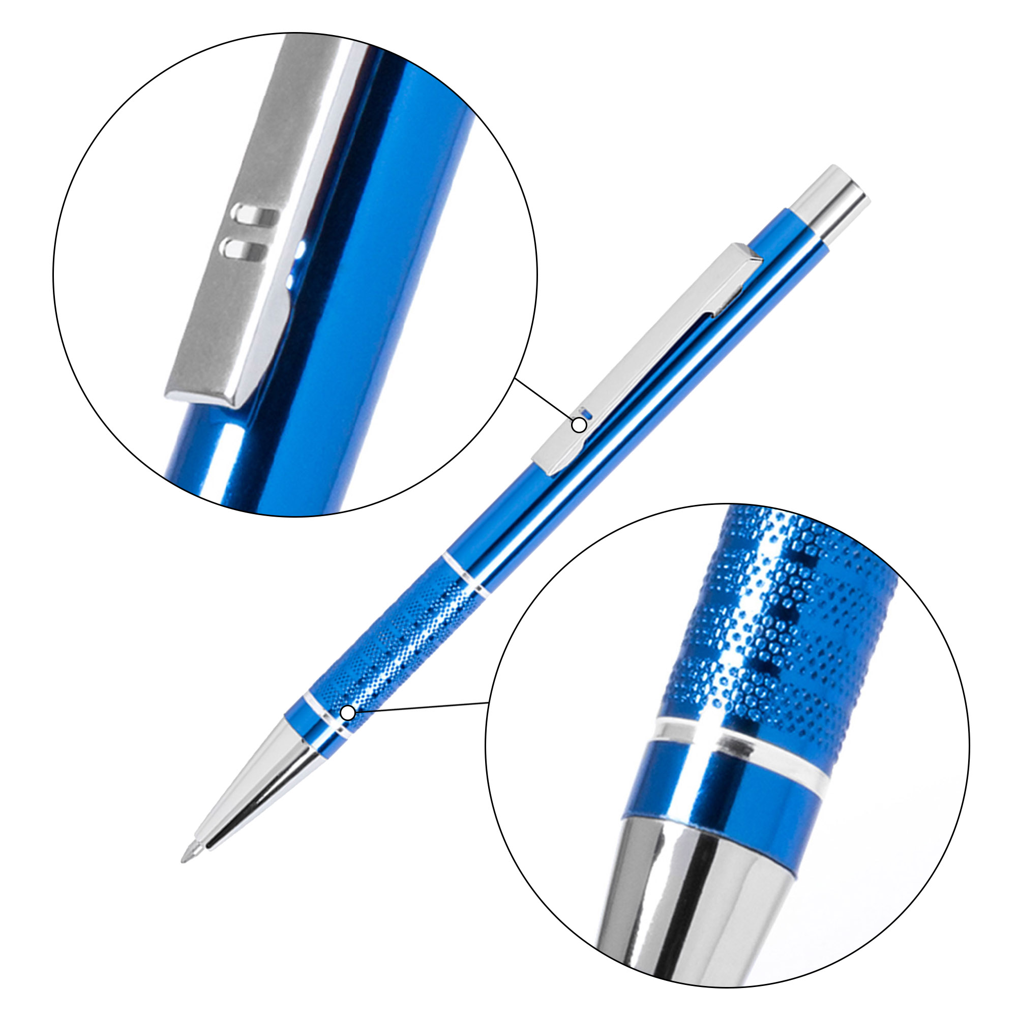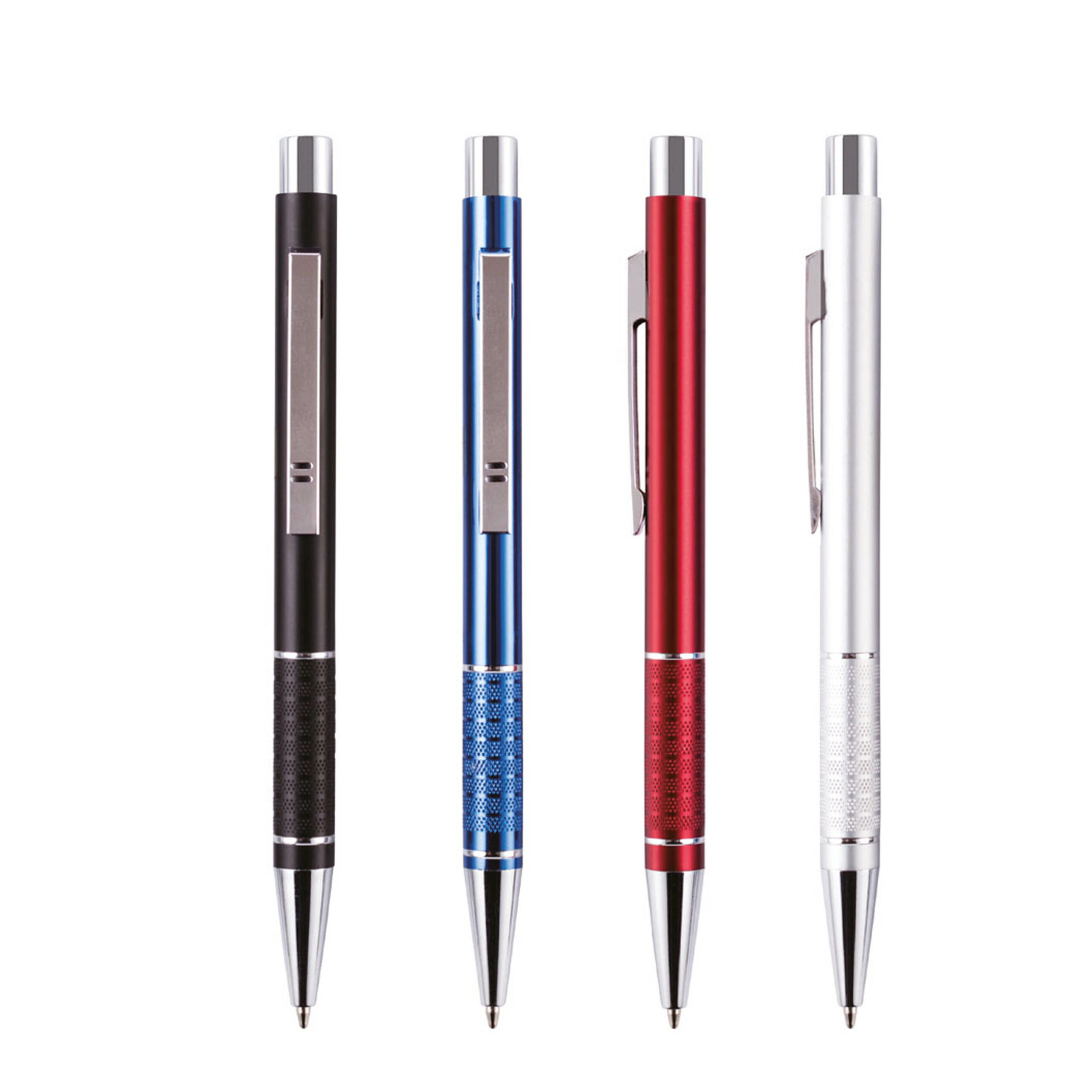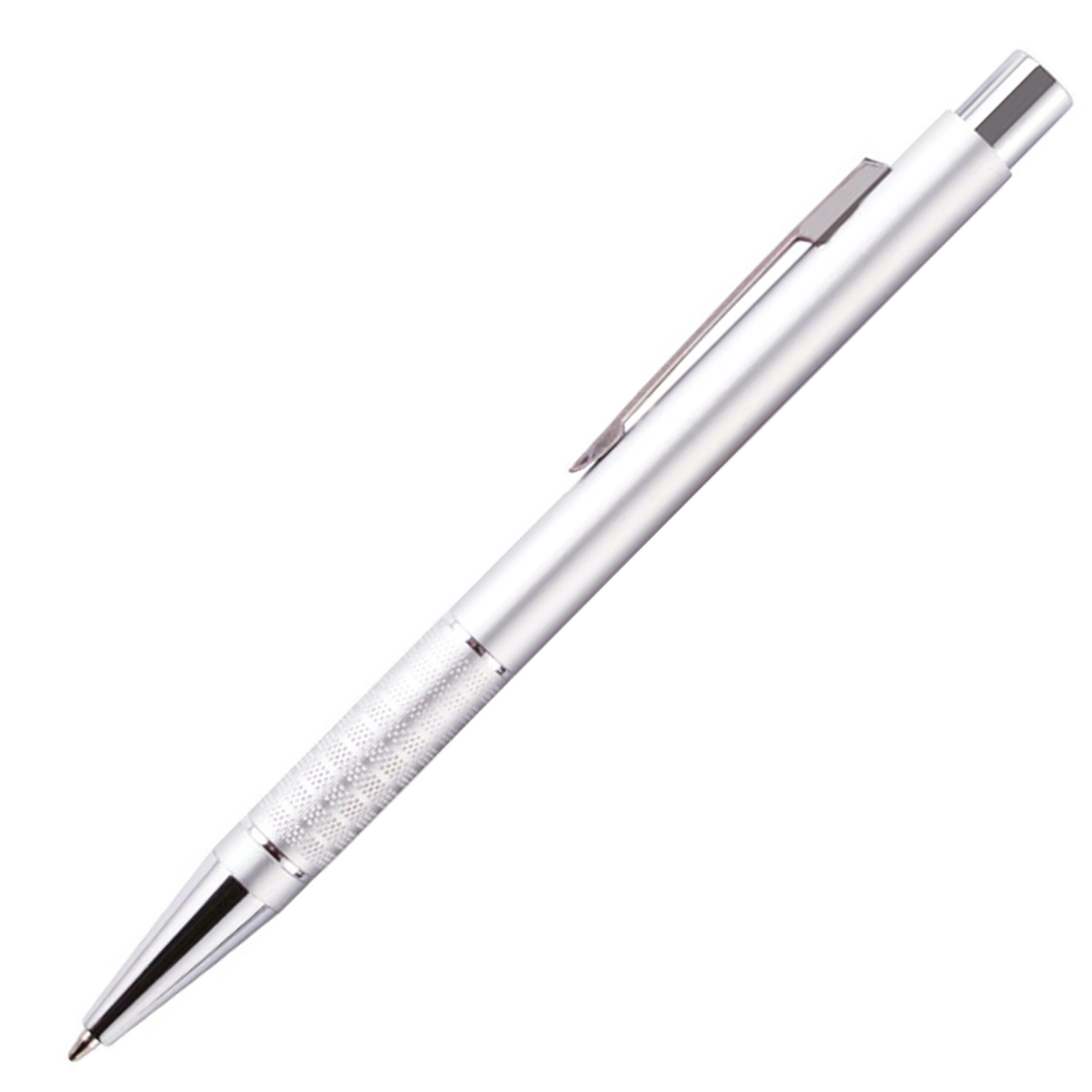 Click action pen. Aluminum stylish design pen with shiny silver fittings and metallic finishing. Plastic Cross type Germany black ink refill